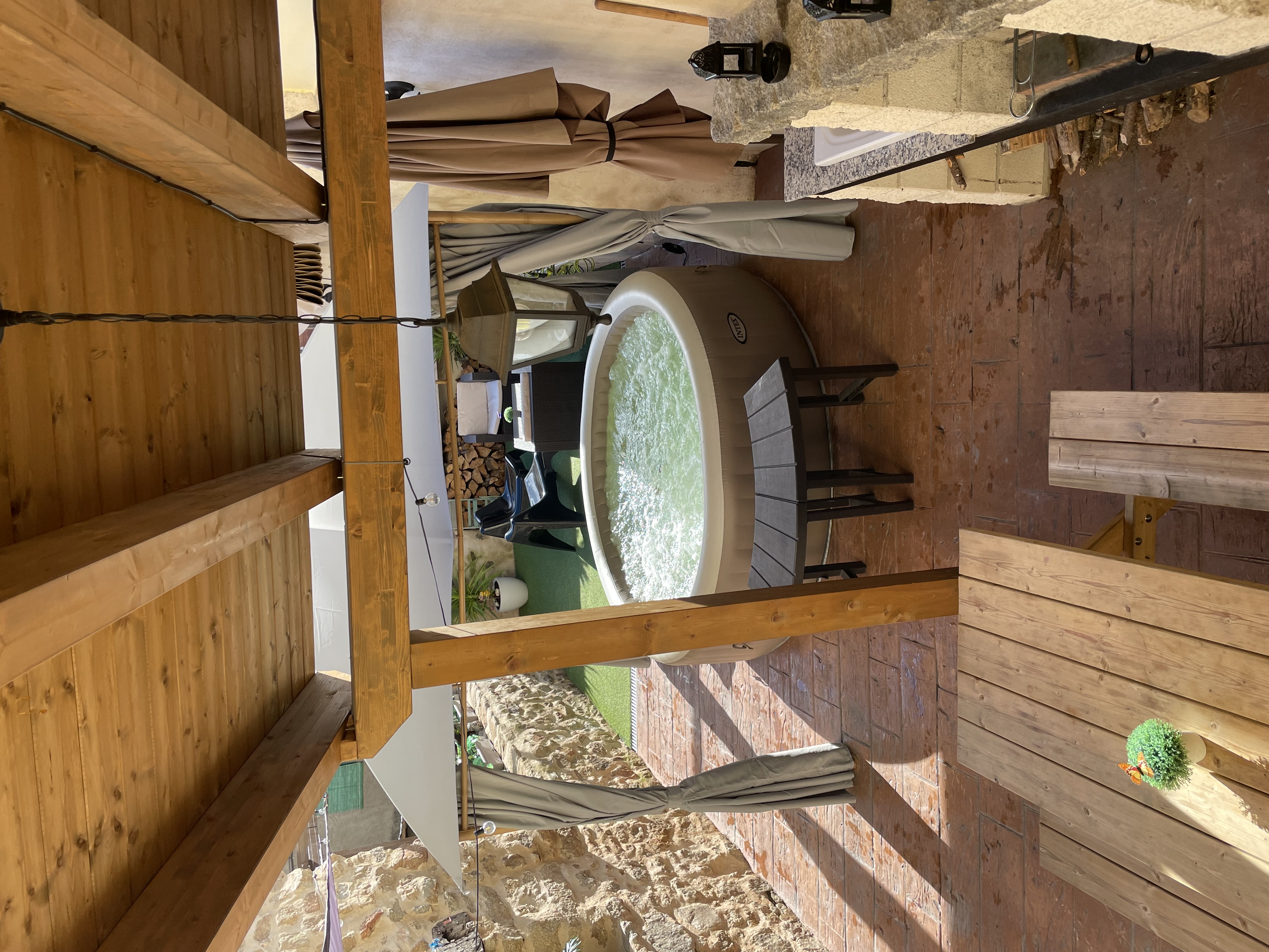 Descubre nuestro encantador patio, un refugio de paz con jacuzzi y barbacoa. Dispone de una sala de estar, cocina y una chimenea . Un espacio perfecto para relajarte, leer un buen libro o compartir momentos inolvidables. ¡Te esperamos para una experiencia única!